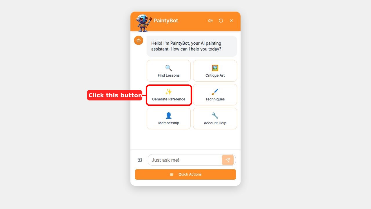 Open up PaintyBot by clicking the blue chat button in the bottom-right corner of any page.