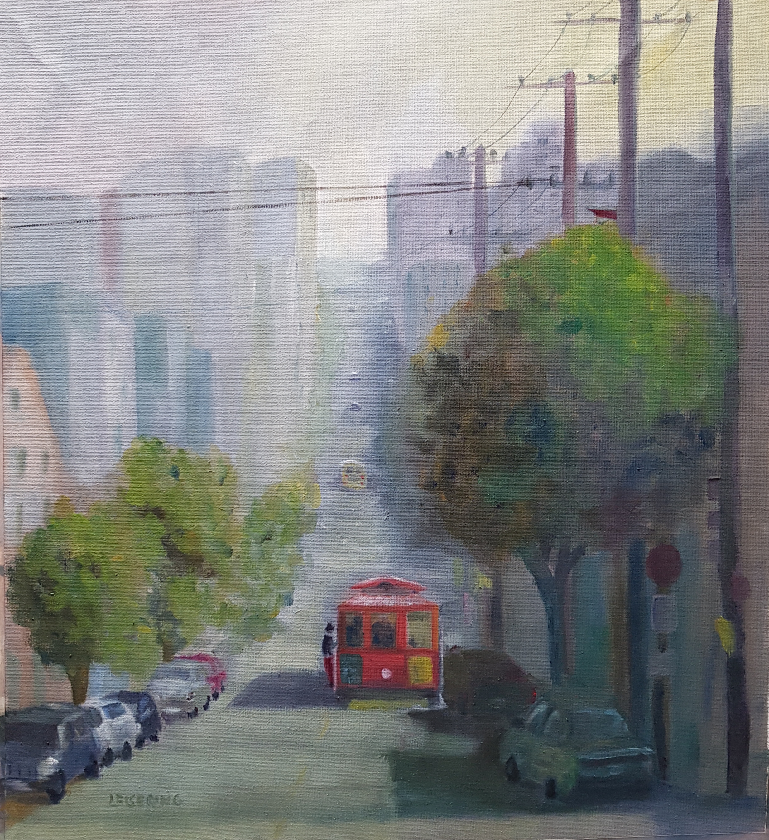 Very vibrant and energetic, Eric - it draws my attention. You’ve captured the bustling atmosphere beautifully with the bold use of color and strong shapes—particularly the lively greens of the tree constrasting the punchy red of the streetcar. Your composition draws the viewer right into the scene, leading them up the hill and into the distance.