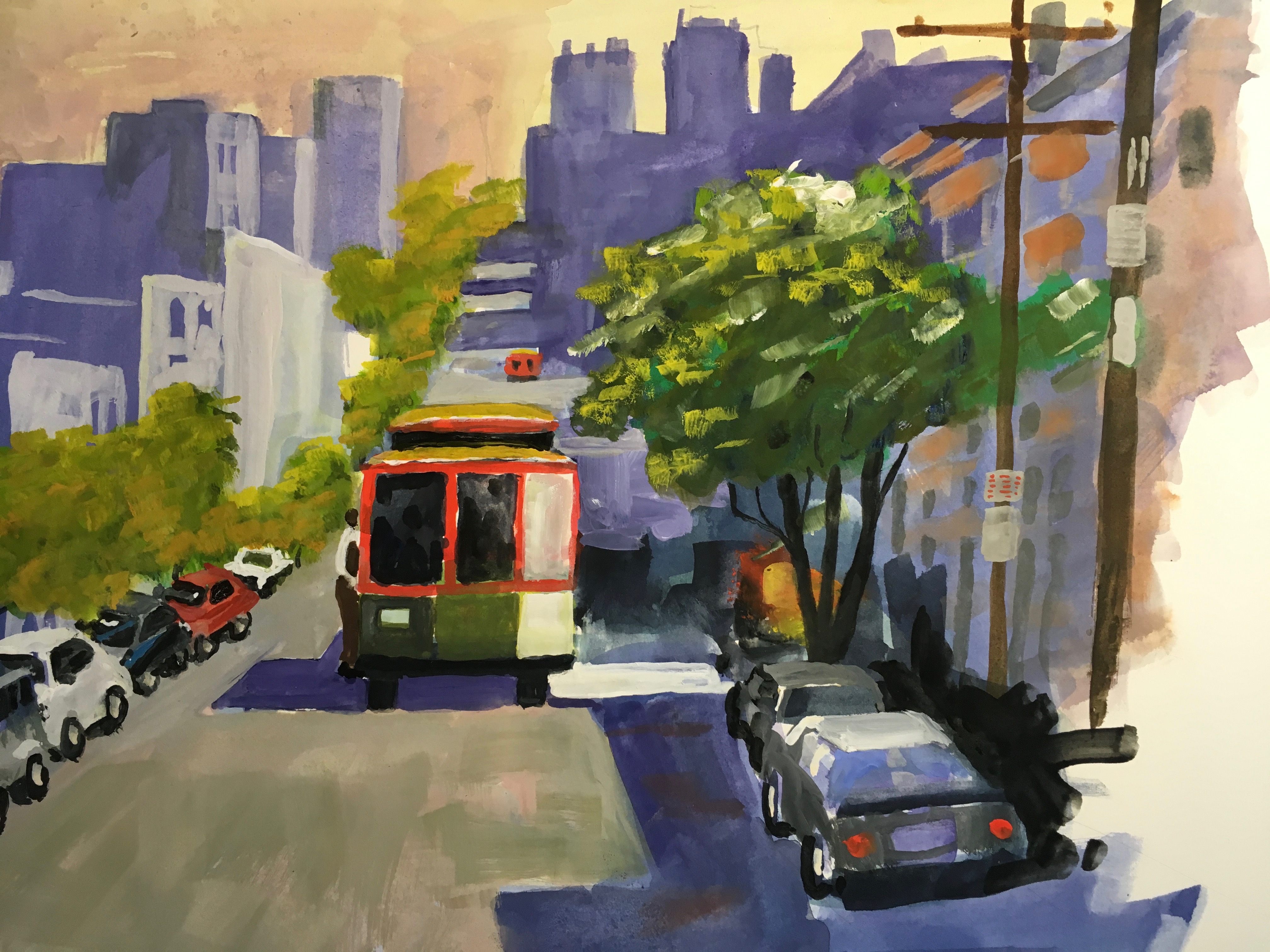 "STREETS OF SAN FRANCISCO" watercolour & gouache by Eric Hillmer, Toronto, ON, Canada.
