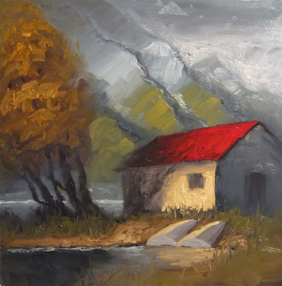 'Glenorchy Boat Shed' 12x12" Oil on Paper by Ross G.