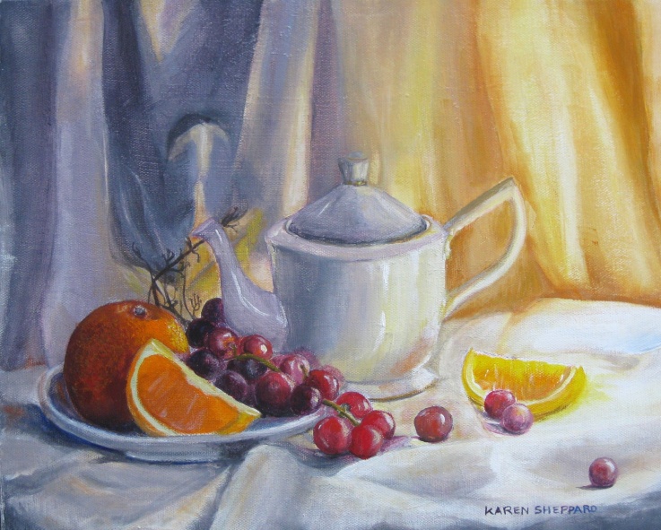 'Light on Oranges' Acrylic on canvas, 16 x 12", by Karen Sheppard