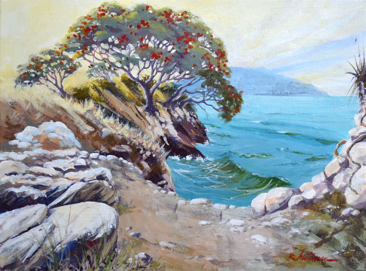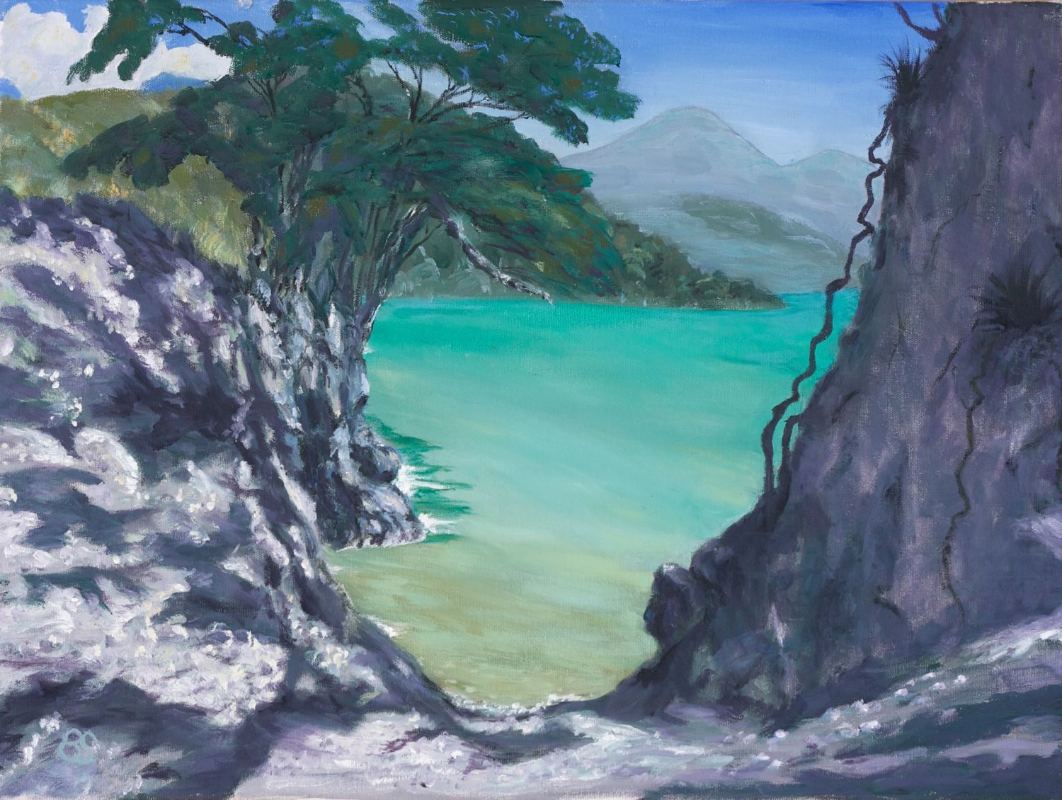 "Pa Bay Great Barrier Island" Water Soluble Oil on Stretch Canvas 18x24 by Barbara Stucki