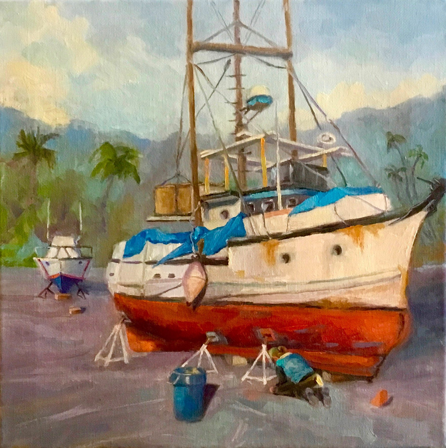 "Boat Repairs" 14 x 14" Oil on Canvas by Richard Robinson.