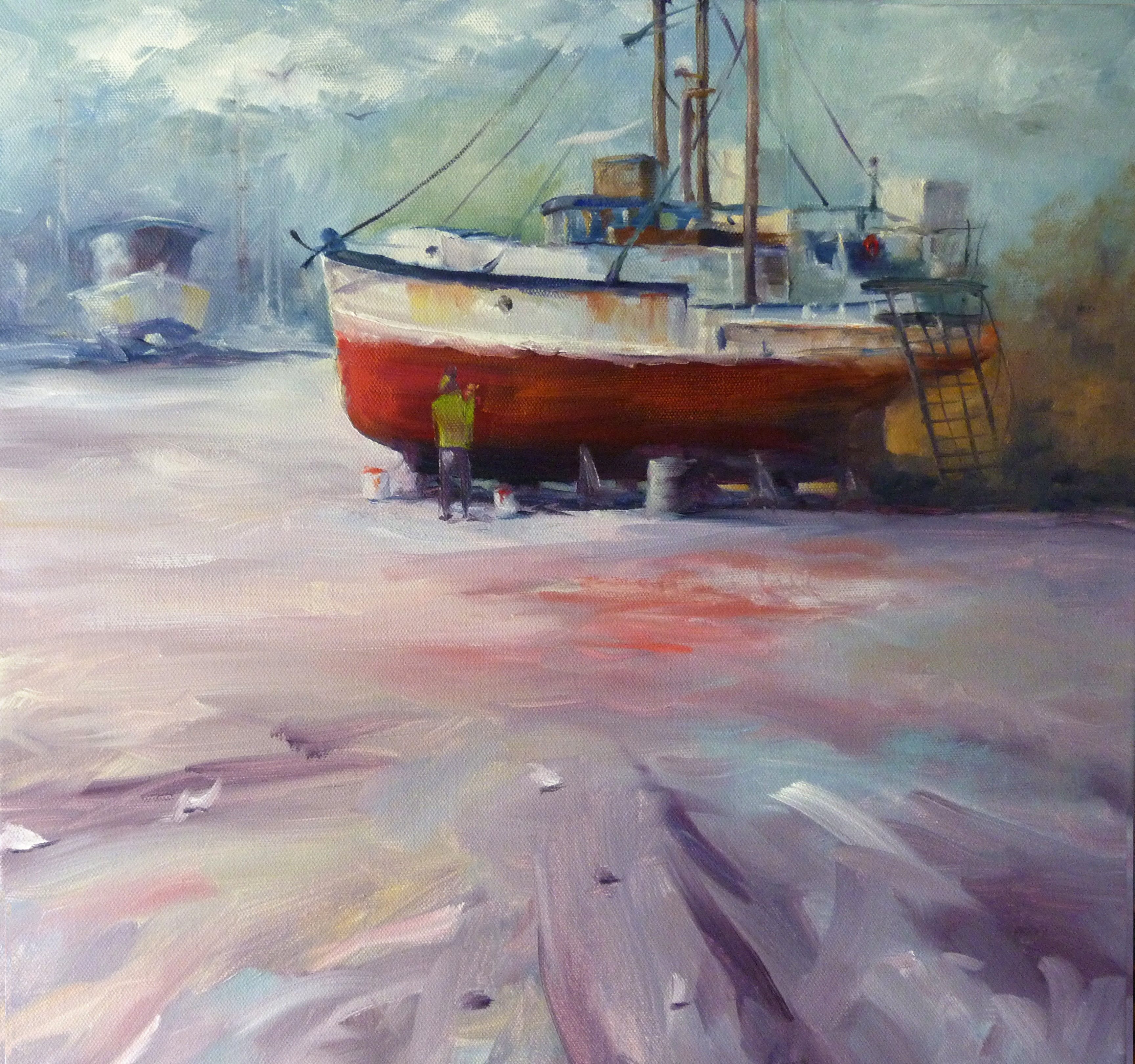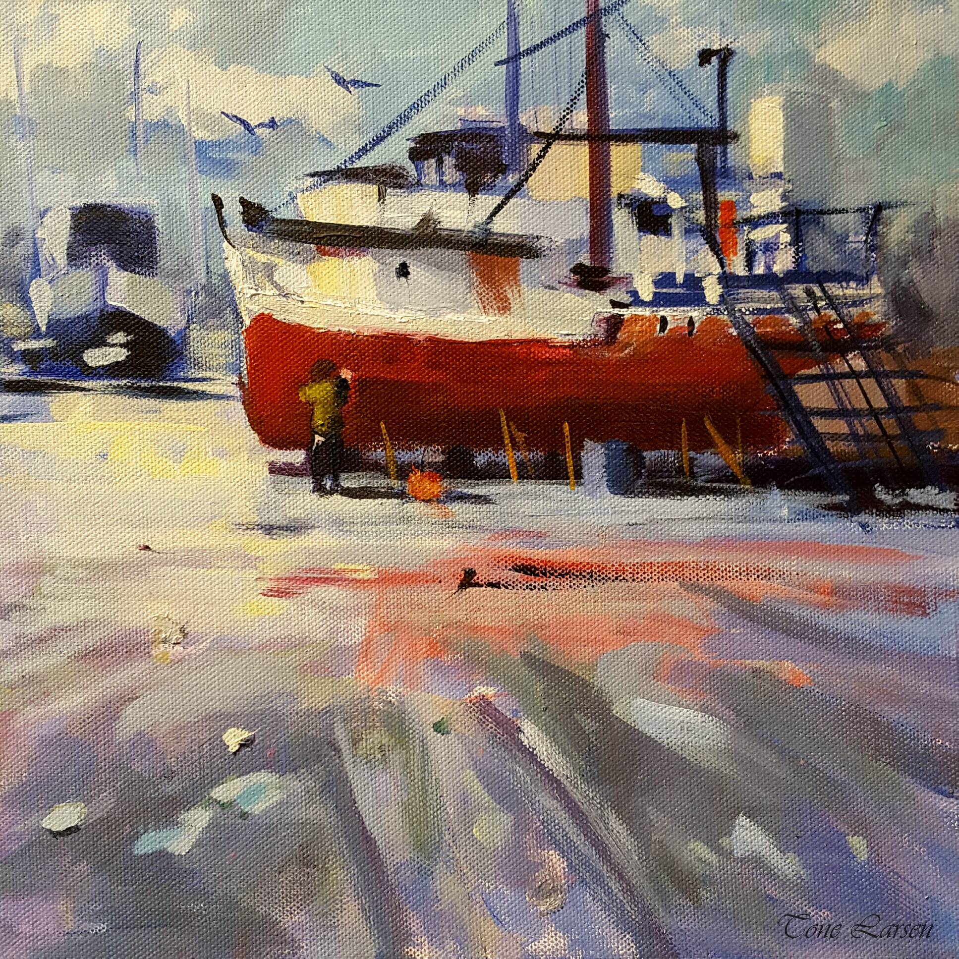 "Boat Repairs" 12x12" Acrylic on Canvas by Tone Larsen