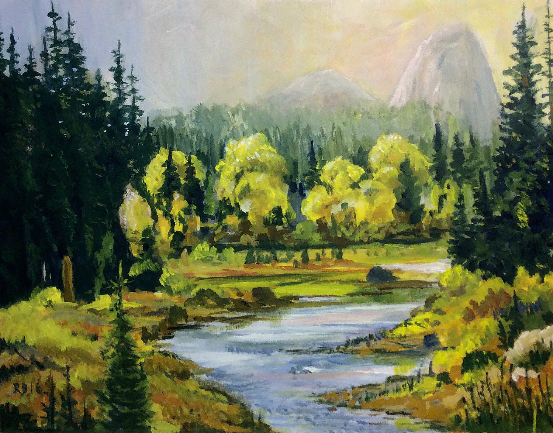 Yosemite National Park. It’s an amazing place, but actually very difficult to paint in! It’s just so big it’s hard to squeeze onto a canvas. It calls for painters to use their artistic licence and move mountains.