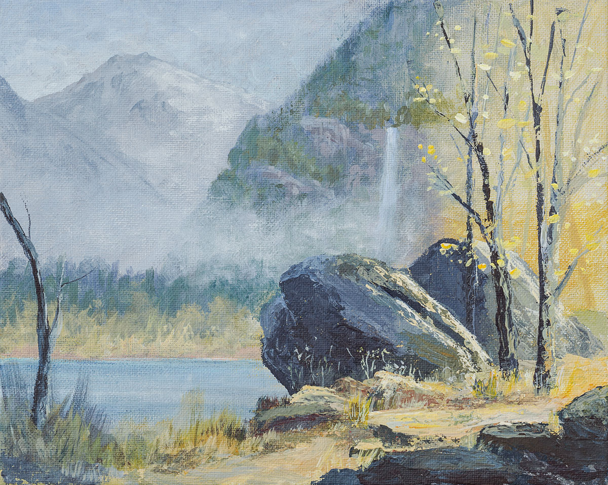 'Mountain and Lake' 10x8" Acrylic on Canvas by Stephen Street