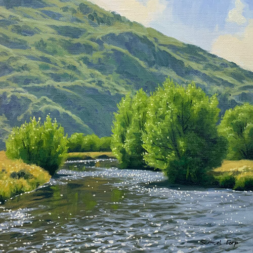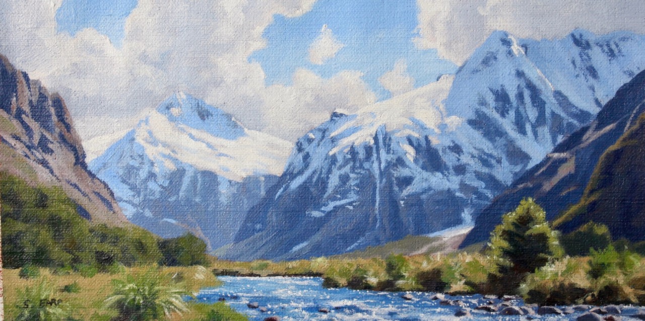 Join New Zealand artist Samuel Earp in painting this beautiful mountain valley. Samuel shows you a methodology for painting a successful landscape from start to finish, including designing a composition from photos, sketching, painting a study and then the in-depth step by step process of painting the final art work.