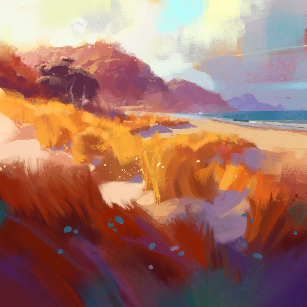 We have a beautiful evening here at the start of summer on Mangawhai Beach in New Zealand. I’m going to show you how I translate this scene with a passionate vibrant style.