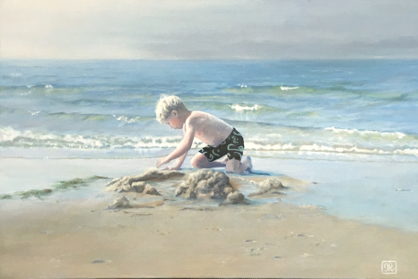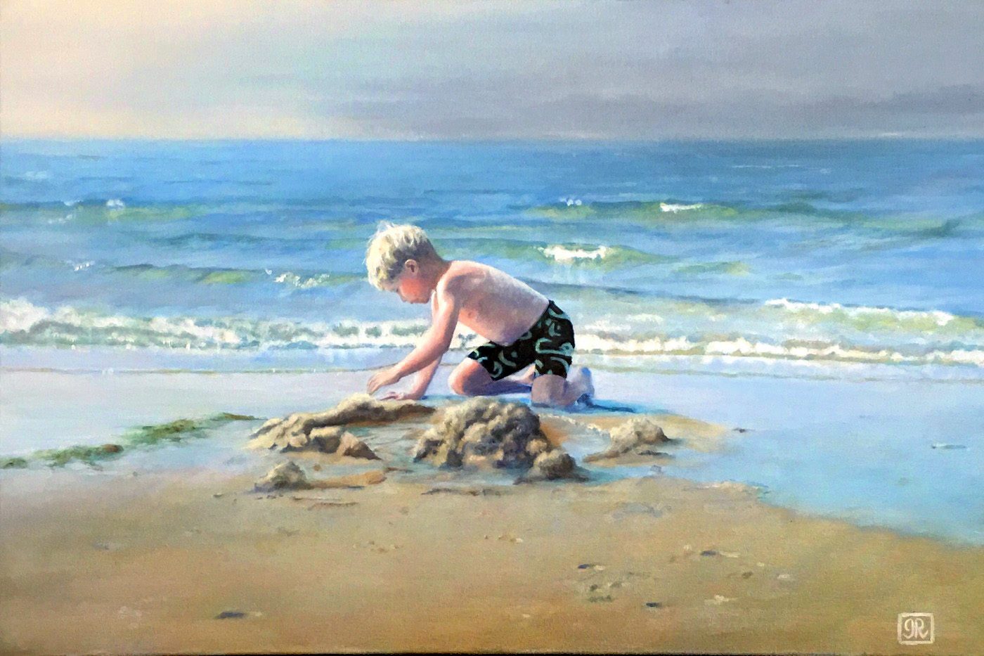 "Alec at the Beach" Oil, canvas 16"x10" by Gail Richardson altered in Photoshop by teacher.