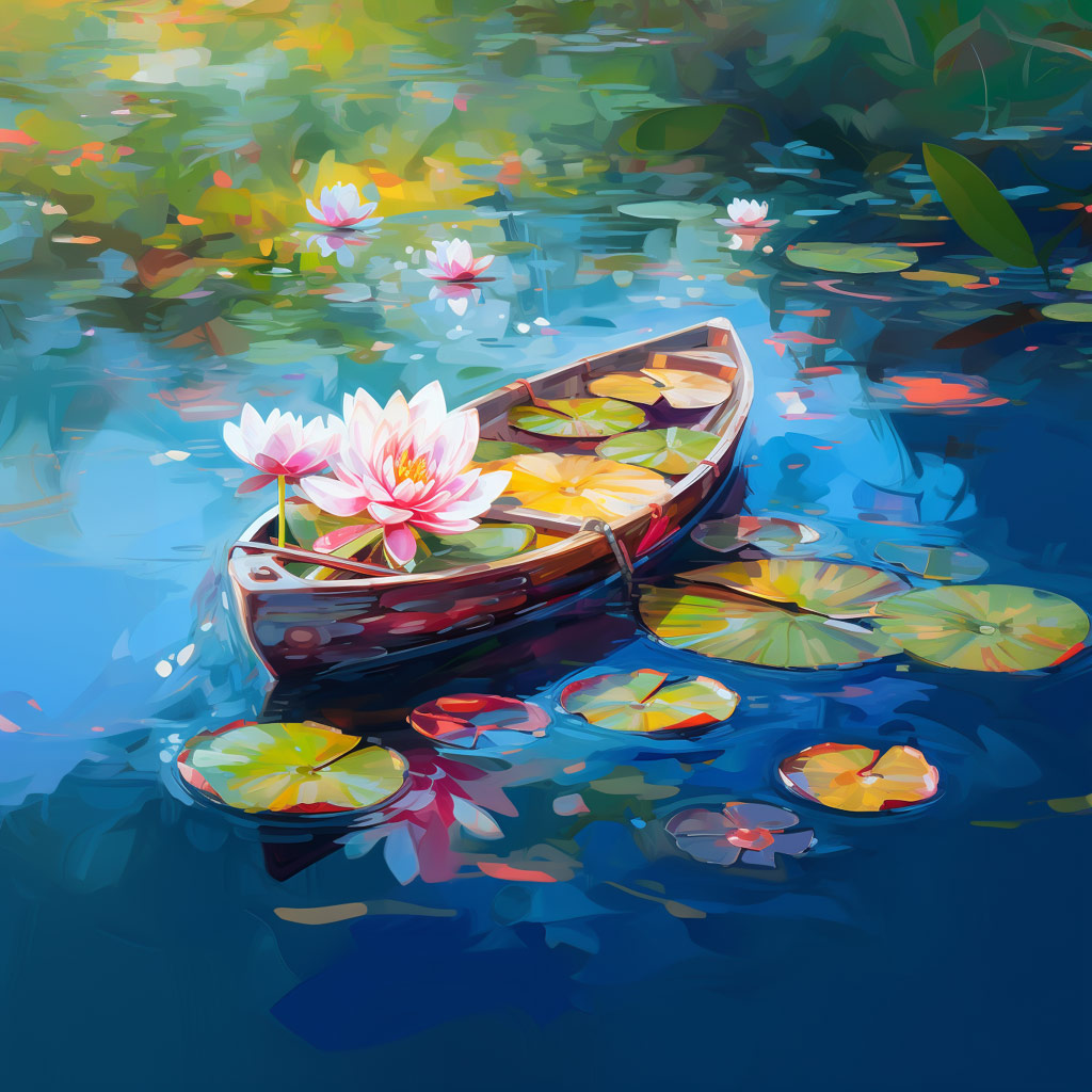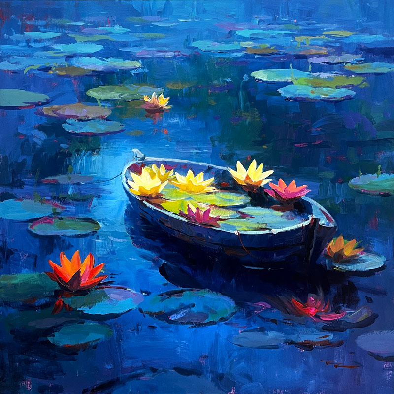 The Lily Boat 30x30" Acrylic on Canvas by Richard Robinson