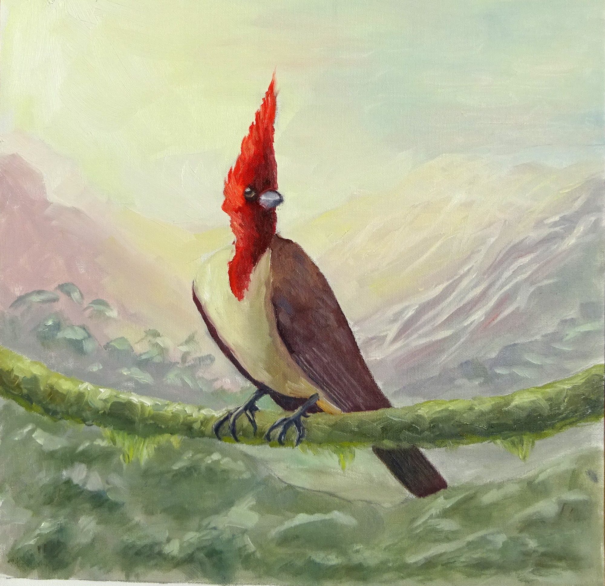 'Displaced Cardinal' 12x16" Oil on Paper by Mairo Piroue