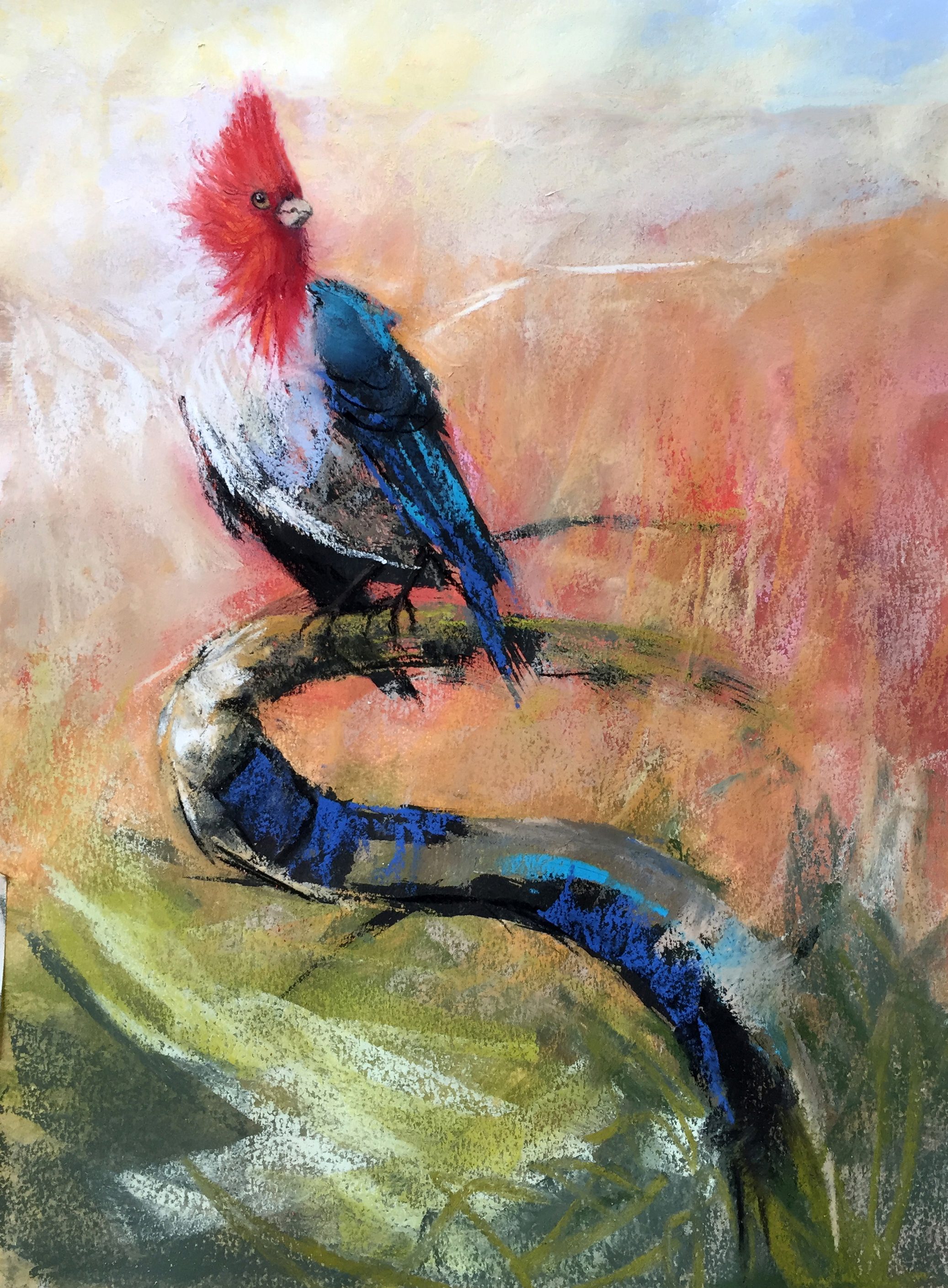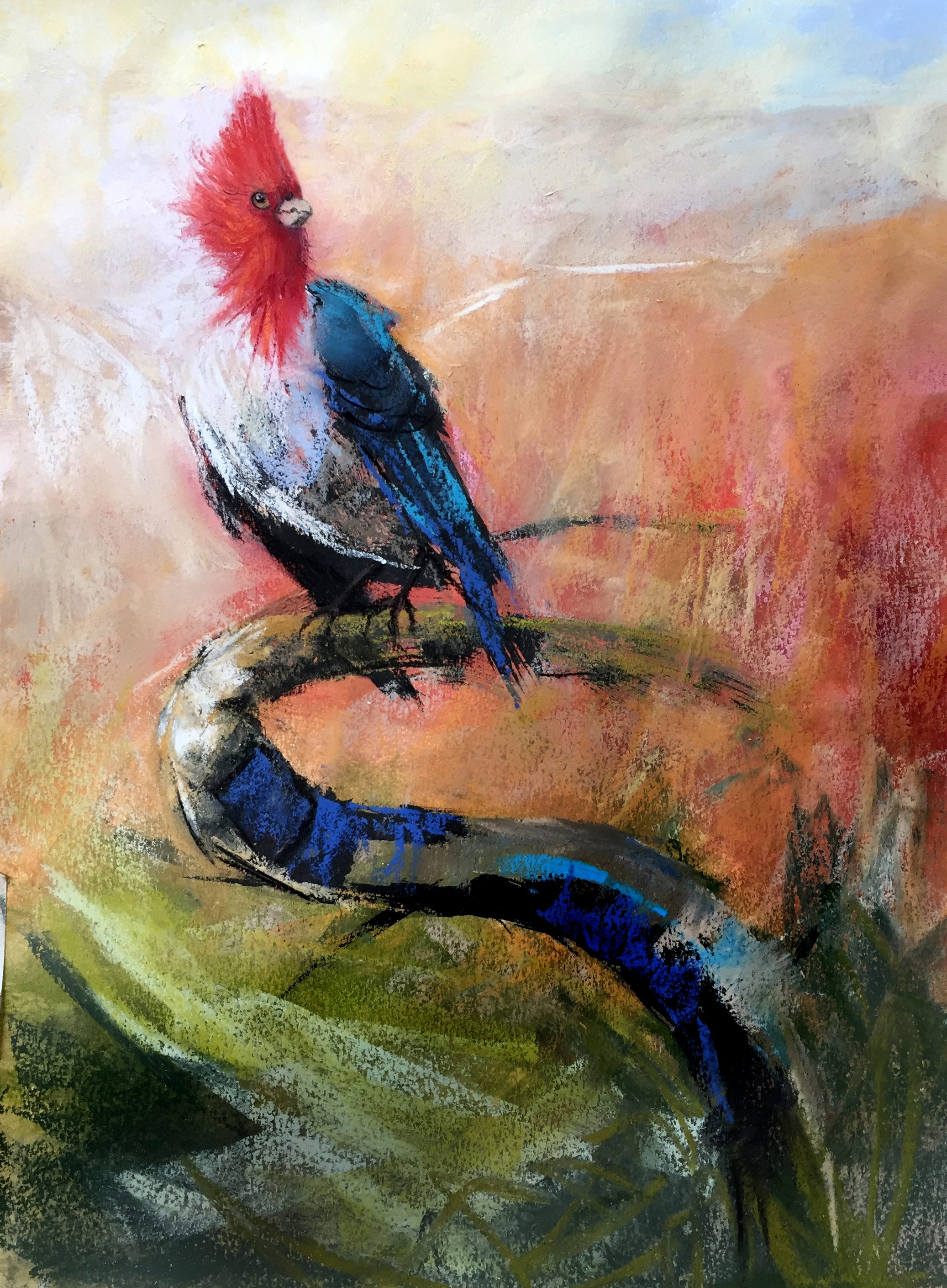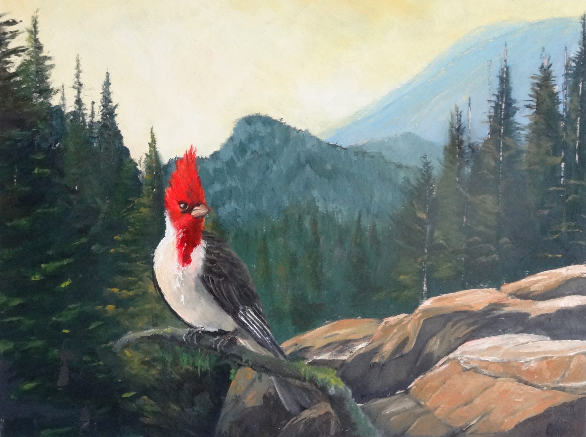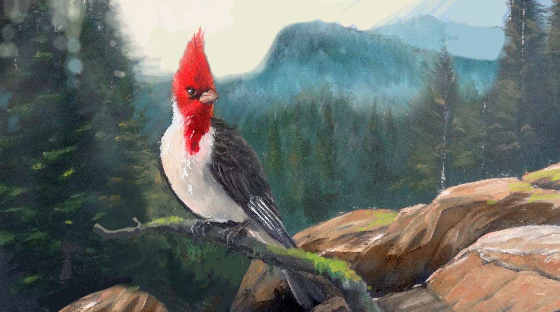 Paint an environment portrait of the stunning Red-Crested Cardinal.