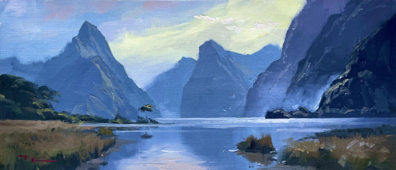 "Milford Sound" 8x16" Oil on Linen by Richard Robinson