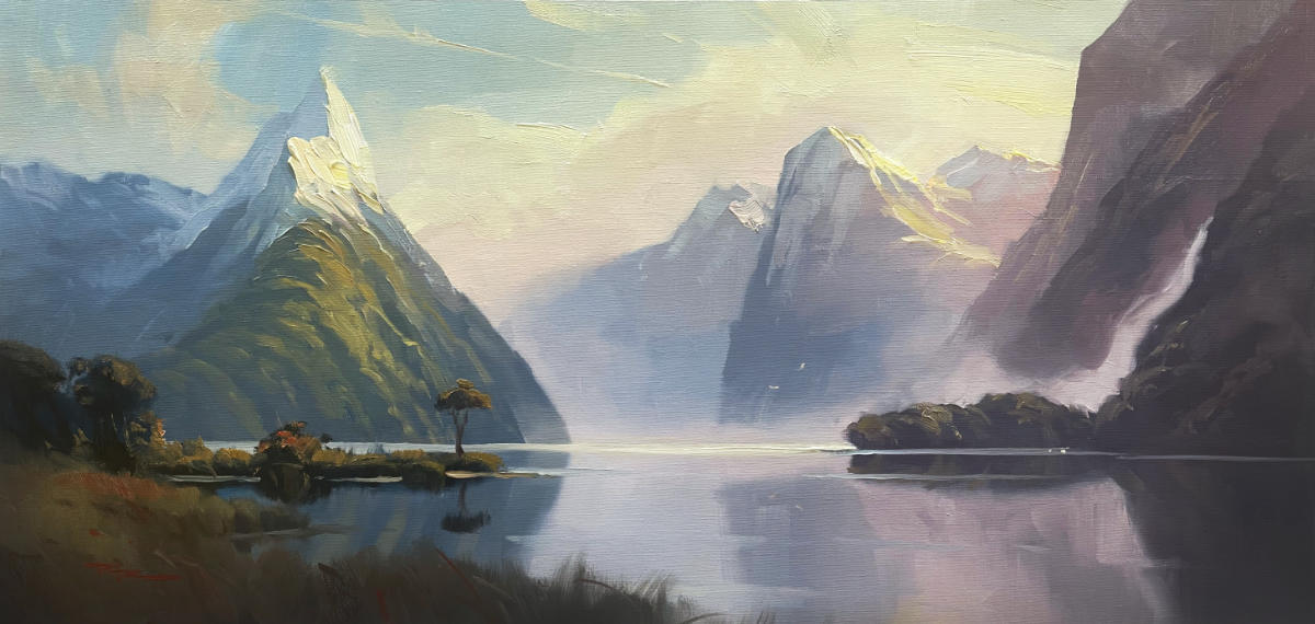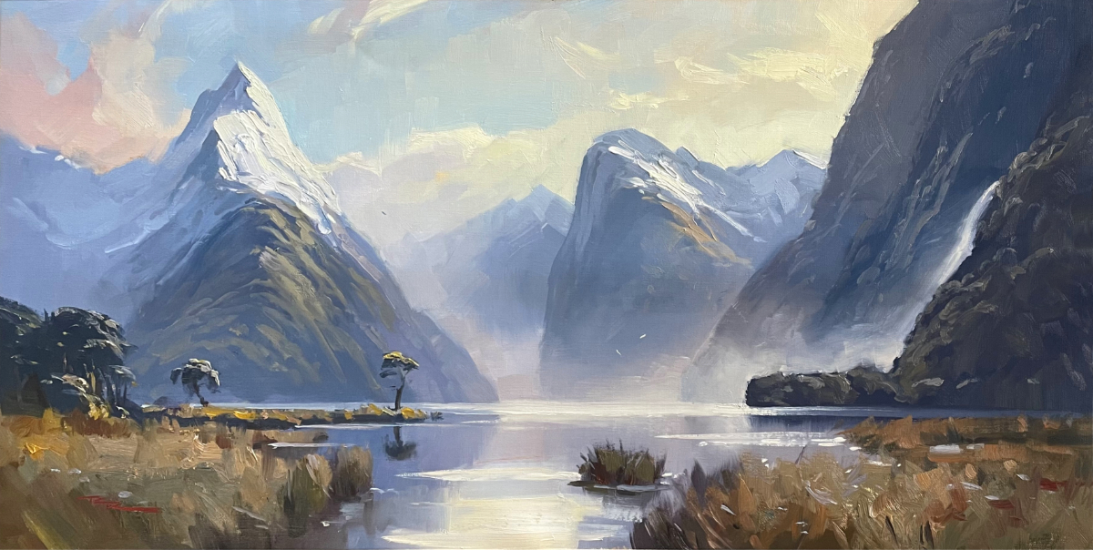 "Milford Sound 2" 14 x 24" Oil on Linen by Richard Robinson