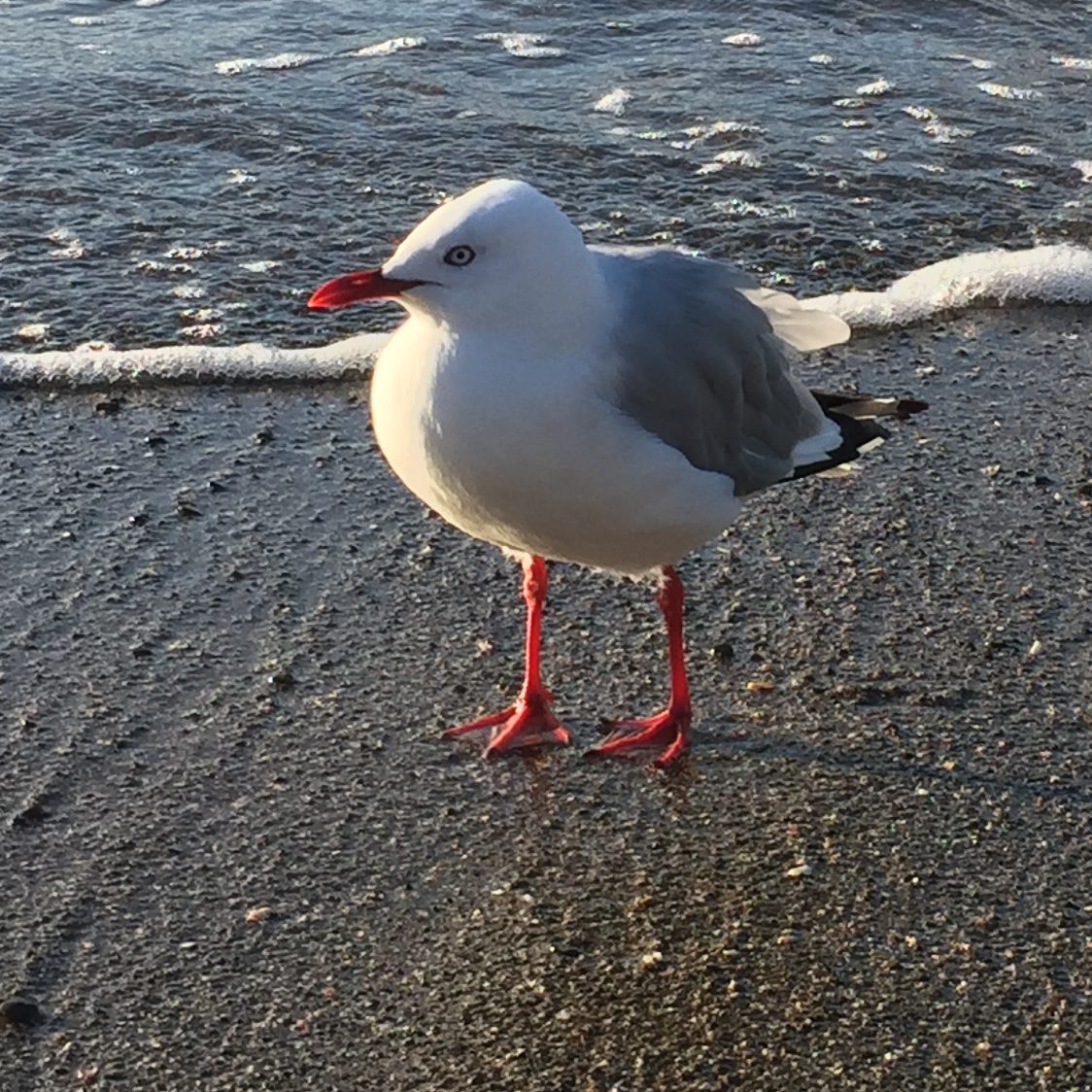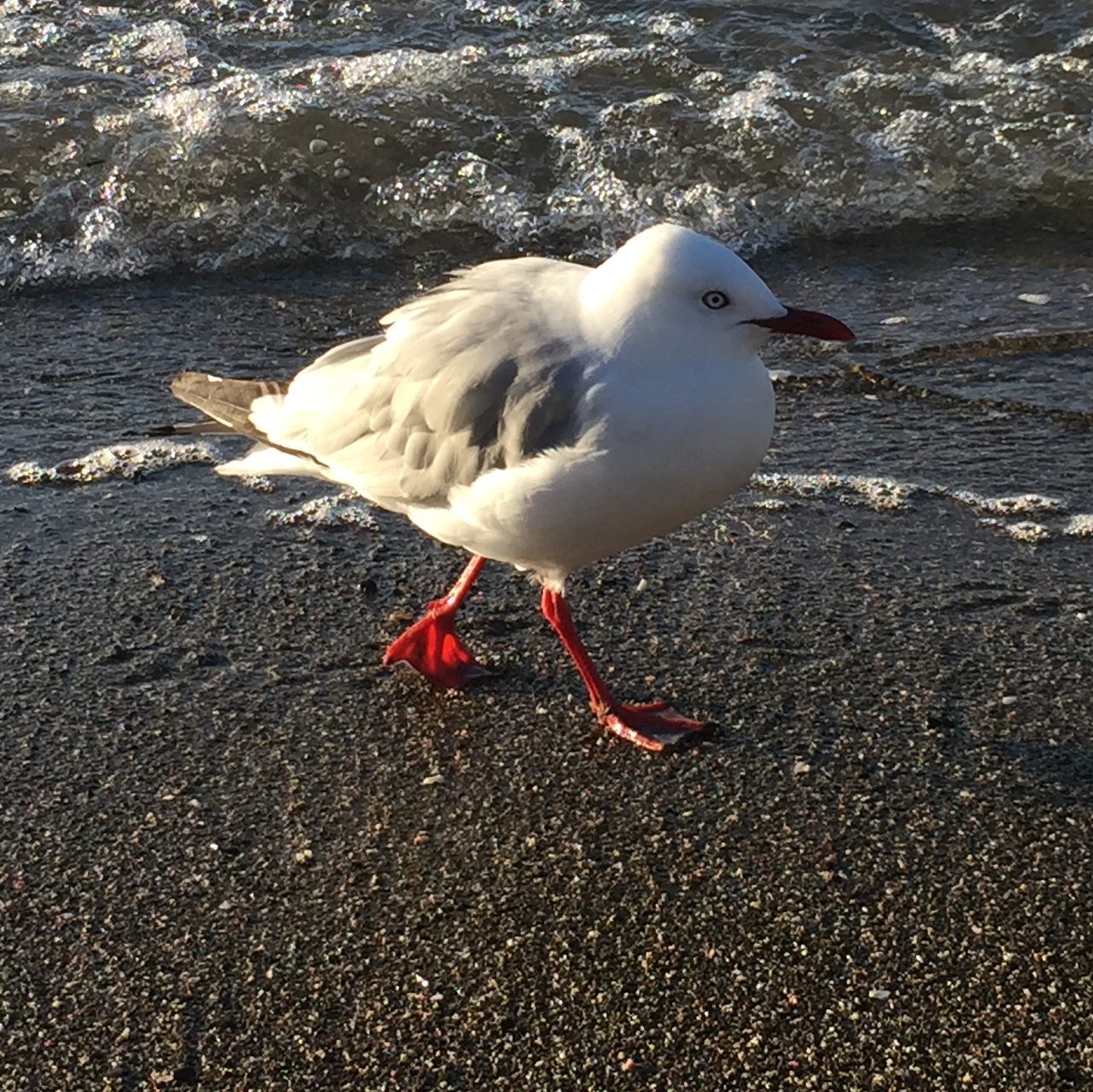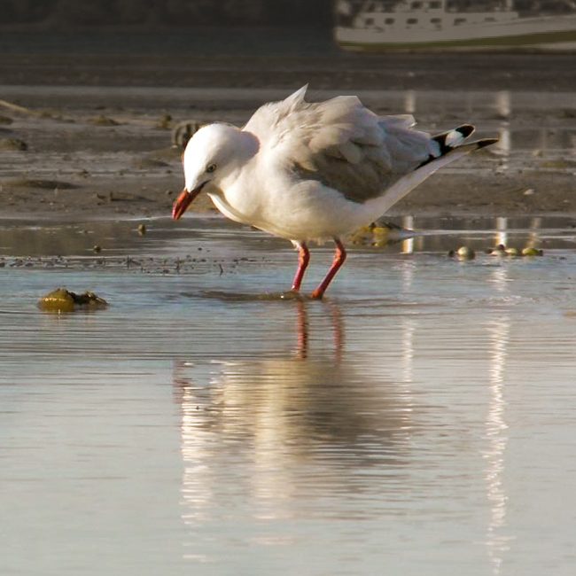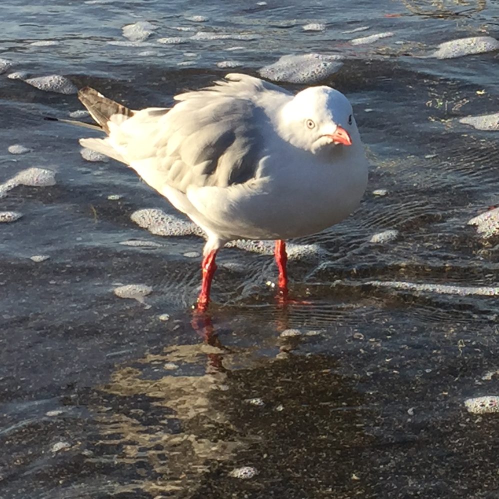 "Local gull found in the Atlantic Ocean. 'Brown Hooded Gull'. It's a really funny looking gull with a great expression!! It seems to be a cartoon.... but it isn't!!" Looks like you had lots of fun with this one Silvana! Nice off balance design implying movement and action. Good modelling of the bird from light to dark, although you could possibly have made him even rounder by darkening the shadows a little. That's a minor thing. I love how you've made this painting part realism part abstract by exploring all the textural possibilities in the wet sand. Great work!