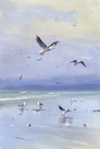 "Flying Seagull" 24x30cm Oil on Canvas by Elena Sokolova