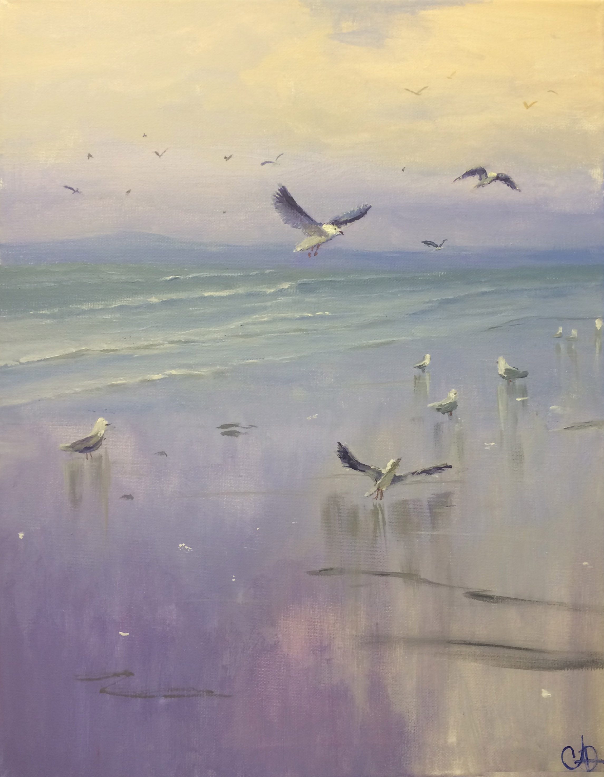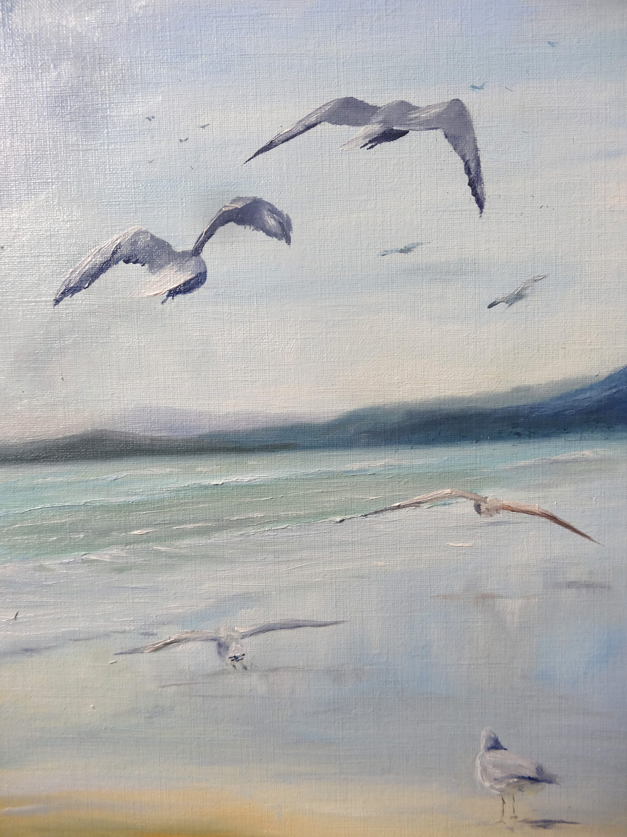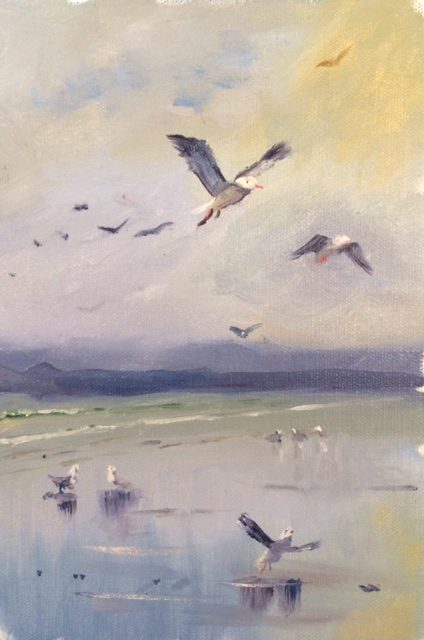 "Seagulls" 8 x 12" Oil on Canvas by Richard Robinson.
