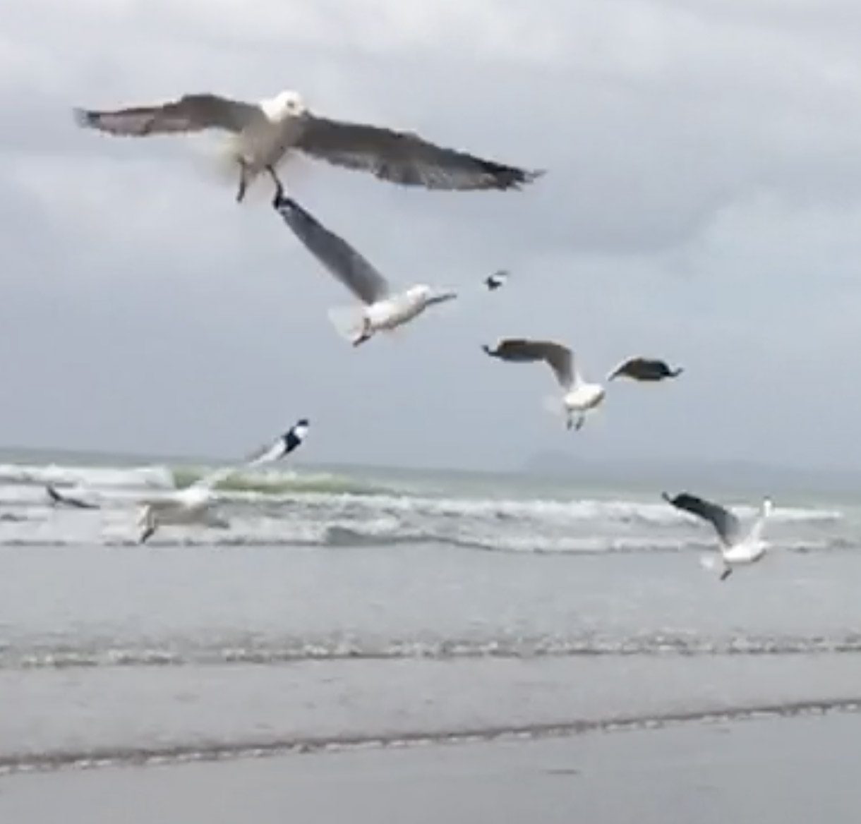 Great feeling to this one Mairo with beautiful bird shapes. Did you crop the photo a little hard or is that gull on the ground just living on the edge? Beware the slanted horizon, although I have seen a slanted aspect used well in other aerial flying images giving a sense of movement and freedom from the ground. I would suggest that if that's your intention, to make it even more slanted so that it becomes a feature, and to not have anyone standing on the ground because they'd look like they were about to fall over. Anyway that's an aside. You've done a great job!