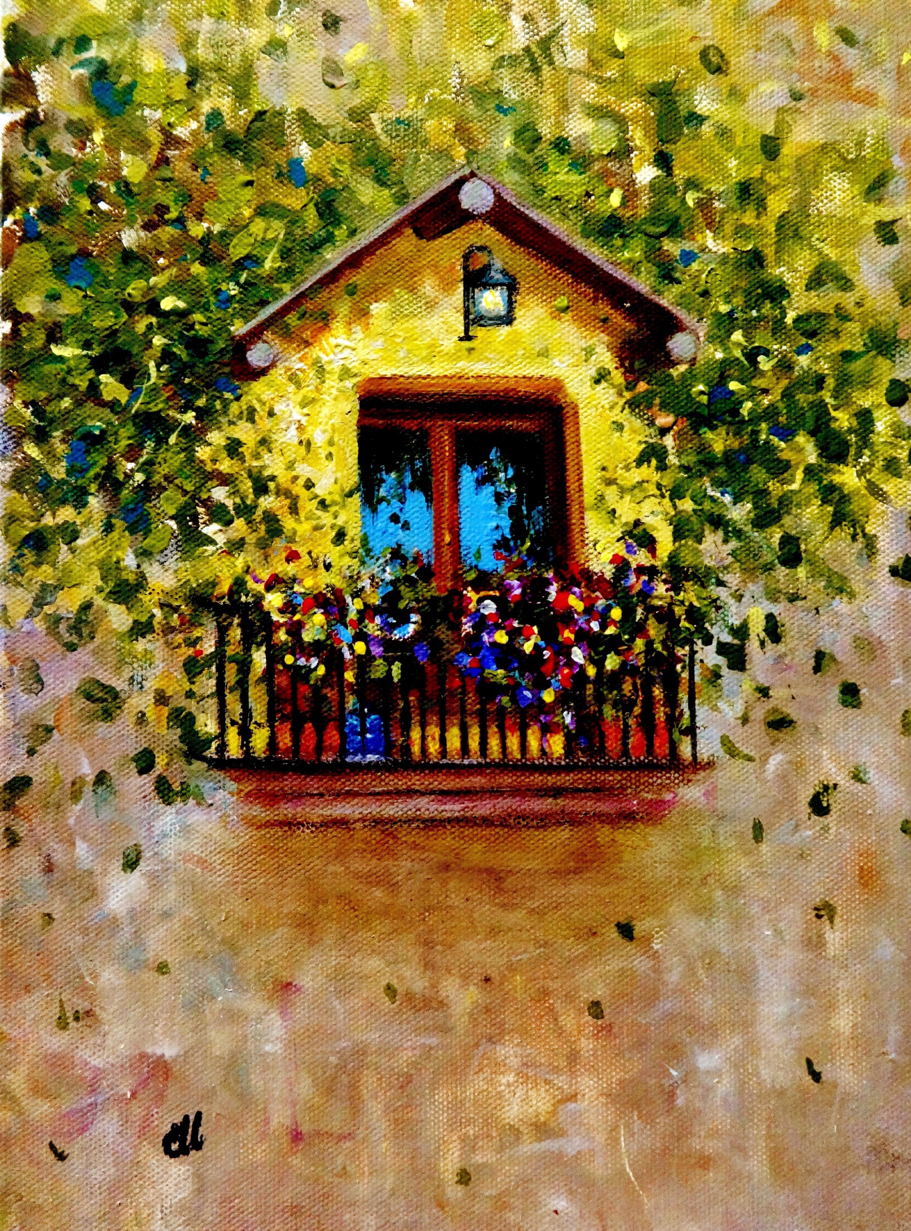"Balcony in Bloom" 33x25cm Oil on Canvas by Jan Duarte