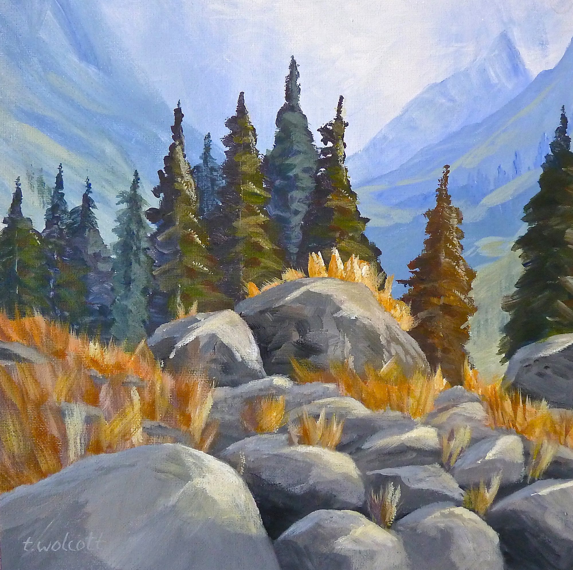 Follow me step by step as I show you the techniques I use to paint this beautiful alpine scene quickly and easily in acrylics.