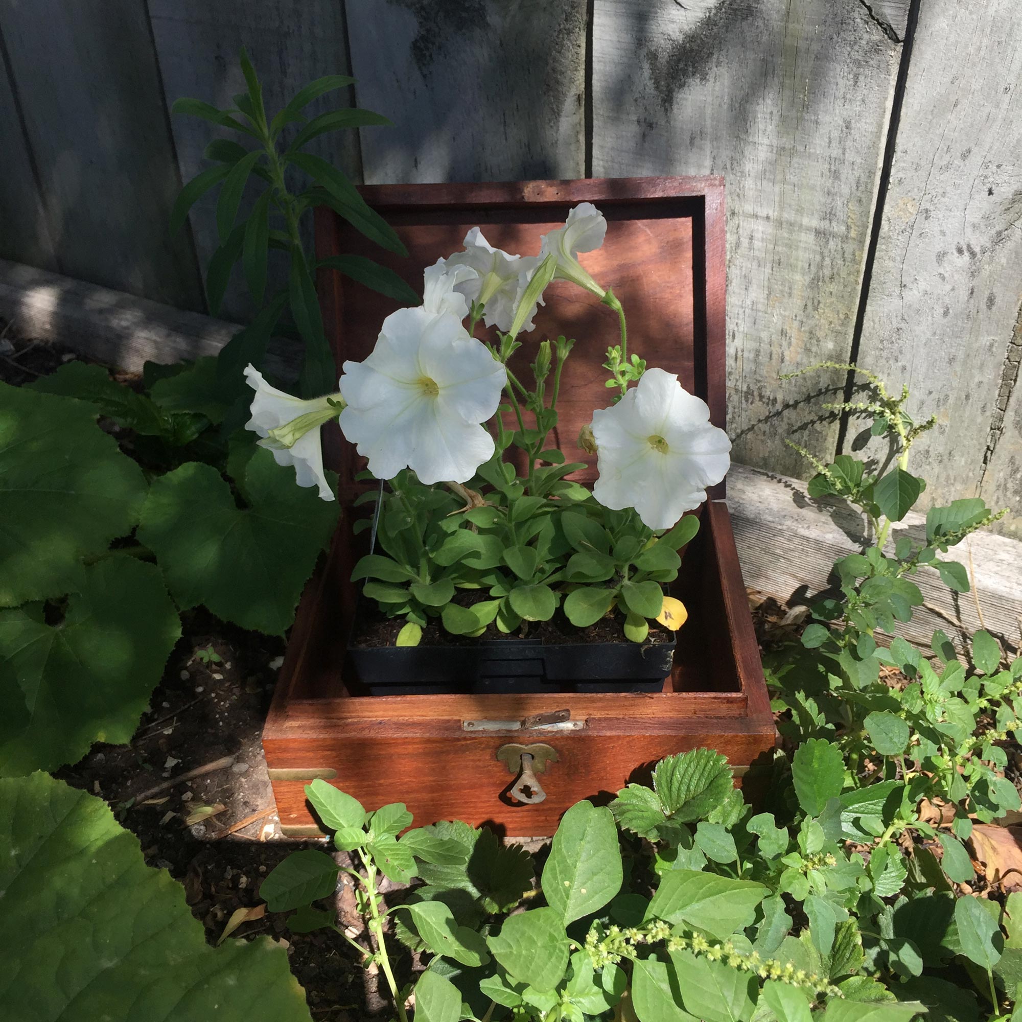 "Petunias" 11 x 11" Oil on Canvas by Richard Robinson.
