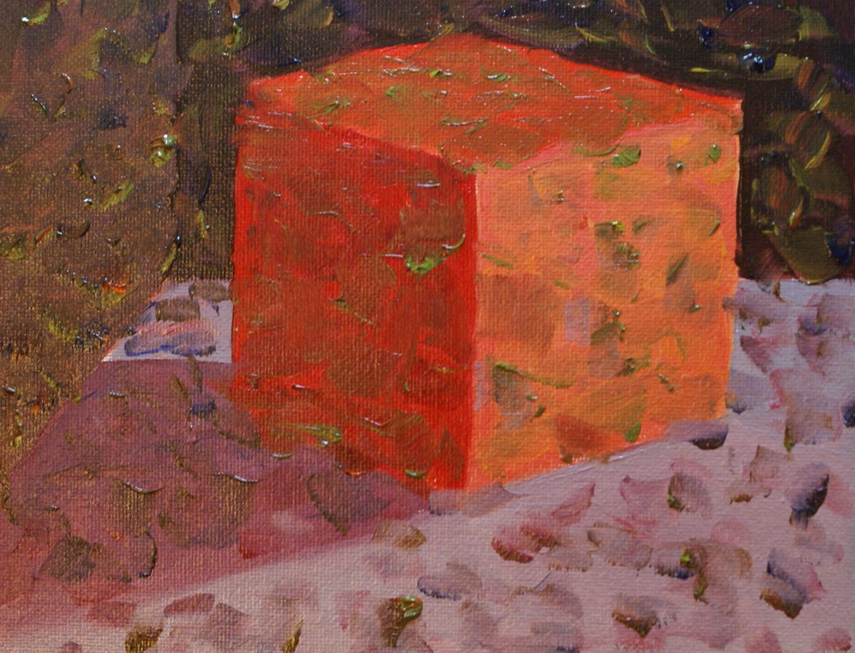 "My red cube final step" Oil on Canvas by Jocelyn Arsenault