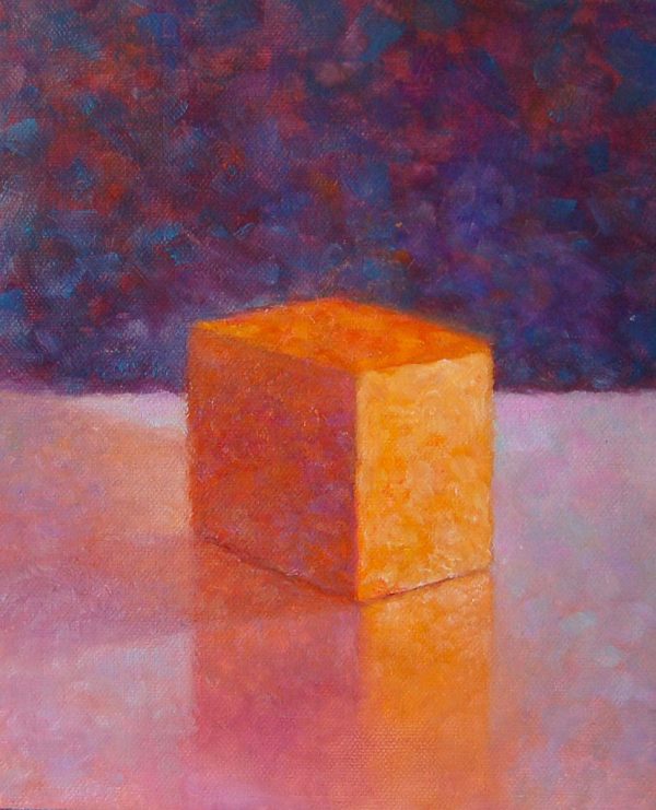 “My red cube final step†Oil on Canvas by Jocelyn Arsenault