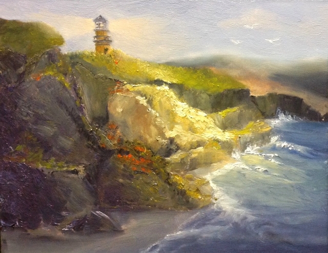 "Lighthouse Beacons" Oil on Board by Lori Ippolito