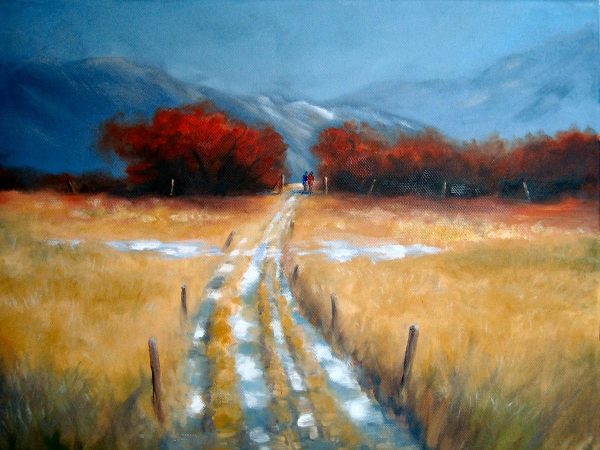 “The Golden Trail†12×16″ Oil on Board by June Stevens